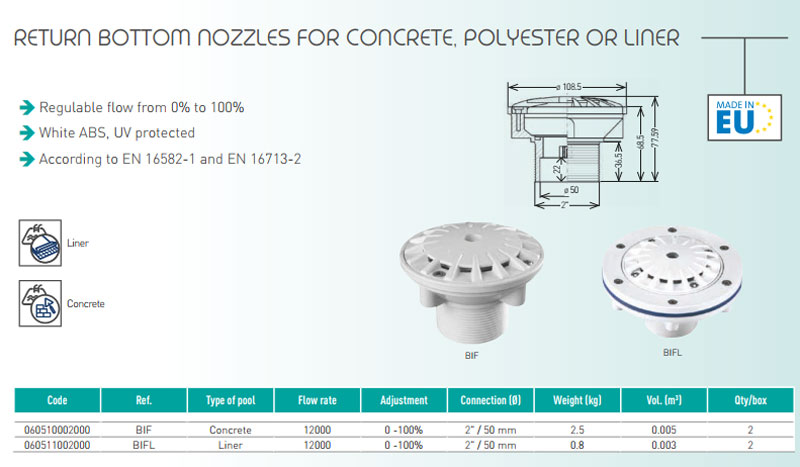 Đầu phun đáy dùng cho bê tông, polyester hoặc tấm lót