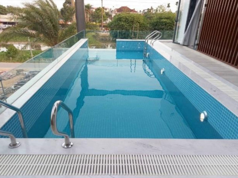 Gạch Mosaic thủy tinh được làm từ các mảnh thủy tinh ghép lại có khả năng chống ẩm, chống thấm nước cao, phù hợp cho các môi trường hồ bơi, phòng tắm. Gạch với nhiều gam màu được làm từ chất liệu thủy tinh khi được ốp lát hồ bơi có khả năng phản quang đẹp mắt.