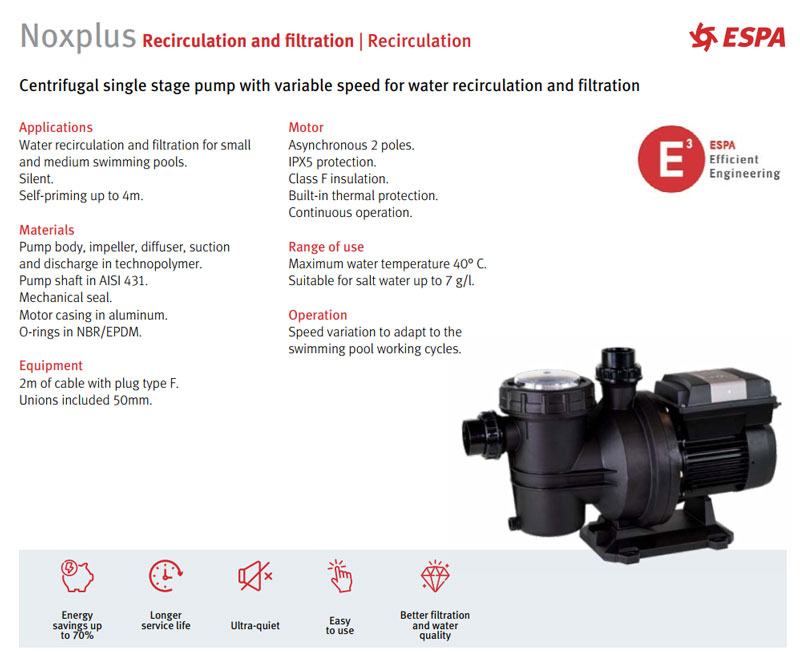 Hệ thống tuần hoàn và lọc nước Noxplus  - Bơm ly tâm một cấp tốc độ điều chỉnh được dùng cho tuần hoàn và lọc nước