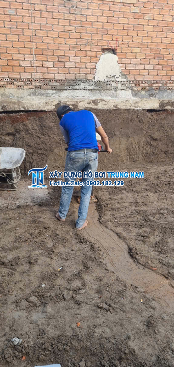 Khảo sát & Đào móng: Định hình kết cấu hồ bơi chuẩn xác theo bản vẽ.