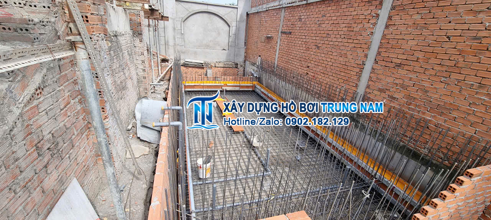 Thi công xây dựng hồ bơi của anh Thưởng tại Nhơn Trạch là một trong những công trình tiêu biểu, được thiết kế và thi công theo tiêu chuẩn hiện đại, đảm bảo sự hài hòa giữa thẩm mỹ, công năng và độ bền kết cấu.