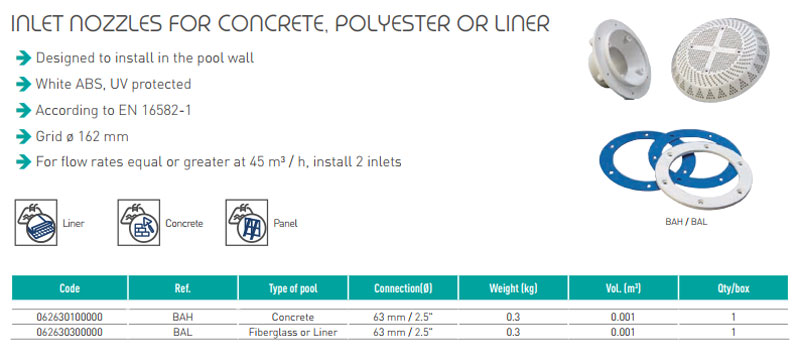 Vị trí lắp đặt: Được thiết kế để lắp âm vào thành hồ bơi.