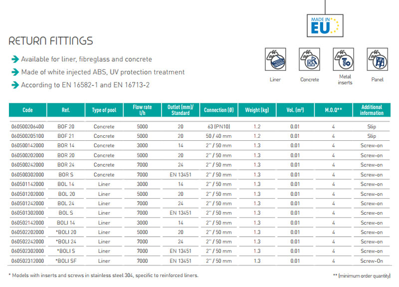Tương thích: Có sẵn các dòng cho hồ bơi lót bạt (liner), sợi thủy tinh (fibreglass) và hồ bê tông (concrete).