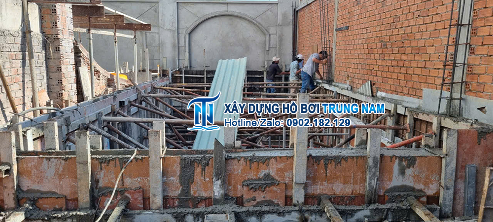 Thi công xây dựng hồ bơi của anh Thưởng tại Nhơn Trạch là một trong những công trình tiêu biểu, được thiết kế và thi công theo tiêu chuẩn hiện đại, đảm bảo sự hài hòa giữa thẩm mỹ, công năng và độ bền kết cấu.